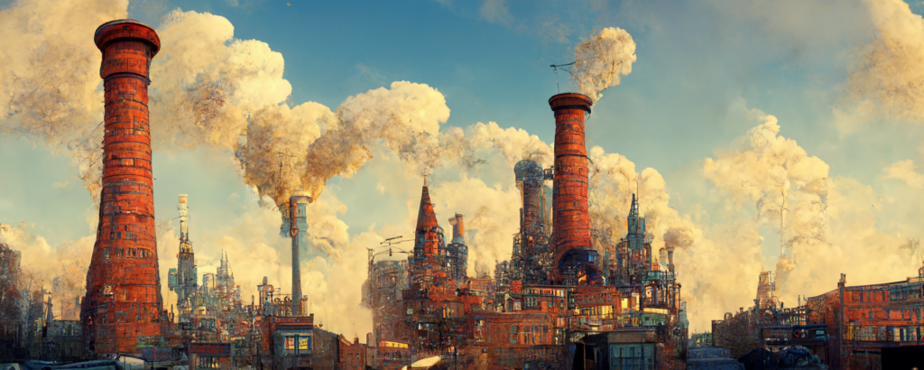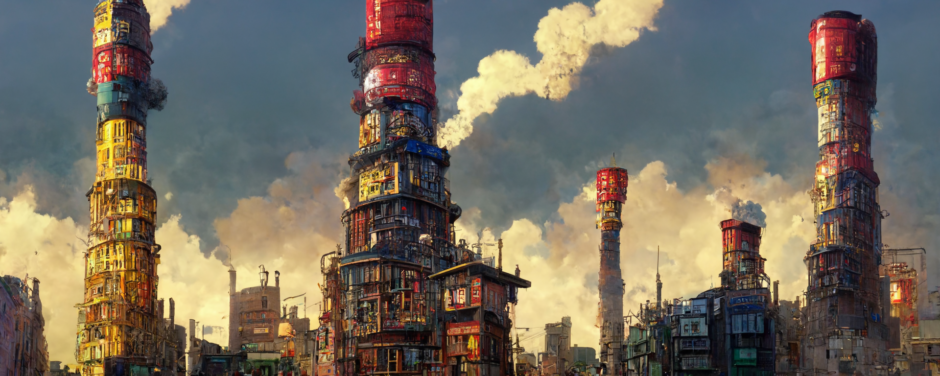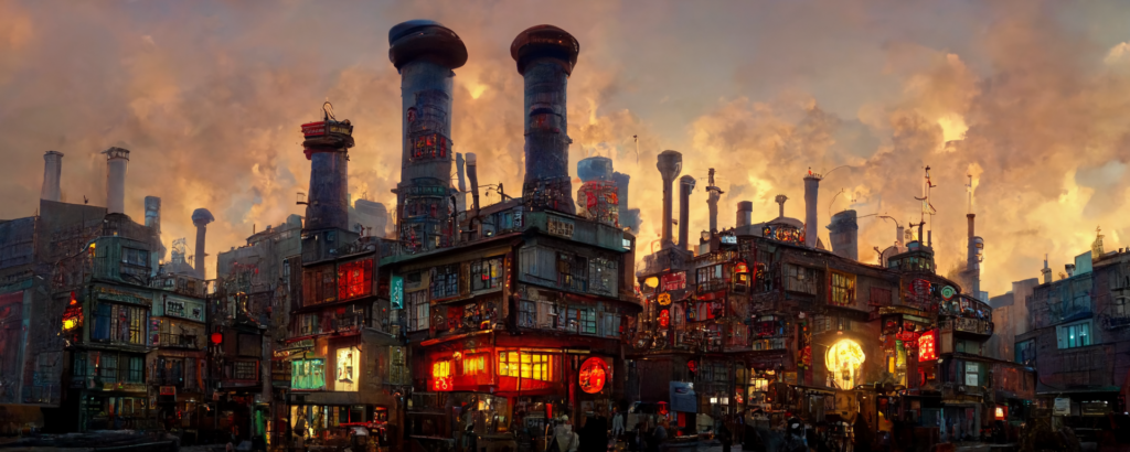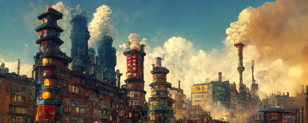 animation cel, steampunk, cyberpunk, shibuya, lot of chimneys, chimneytown, poupelle, primary color, concept art, unreal engine, 3d, hyper detailed, cinematic, hyperrealistic, epic perspective –ar 1500:500